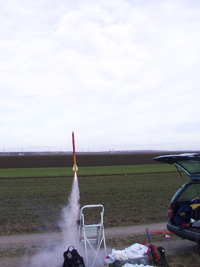 Ja, der Flugtag war super. Hat mich veranlasst die fuer mich erkleckliche Summe von 70€ in Treibsaetze und ein C3 Modell zu investieren. D7 und 12 Starts sind cool, aber kosten....