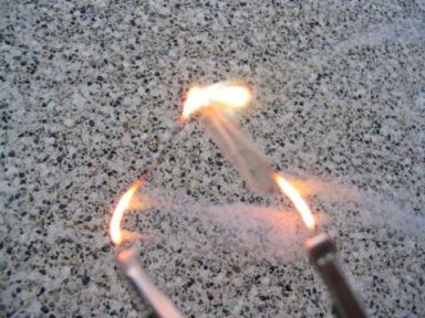 Vorteil wäre das man einfach das Ende der Litze etwas kürzt (wenns nach dem Start angesengt ist) und sofort das frische Drahtende wieder als Zünder nehmen könnte. Nebenbei könnte man auf alle illegalen Zusätze und Chemikalien verzichten. So Litze kostet ja kaum was und der Blitzgenerator den gibts bei Foto-Schnellabors kostenlos wenn die solche Einwegkameras "entwickeln"