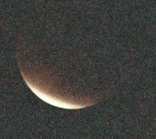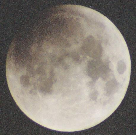 Totale Mondfinsternis - Halbschattenphase Aufnahmedaten Zeitpunkt der Aufnahme: 9.11.2003 0.24Uhr MEZ Verwendete Kamera: Canon EOS IX 7 Film: 27DIN APS-Film Als Objektiv wurde ein Tele-Zoomobjektiv mit 300mm Brennweite verwendet, welches mit Hilfe eines Telekonverters 3-fach auf 900mm Brennweite verlängert wurde. Blende: 5,6 Belichtung: 1/750Sekunde