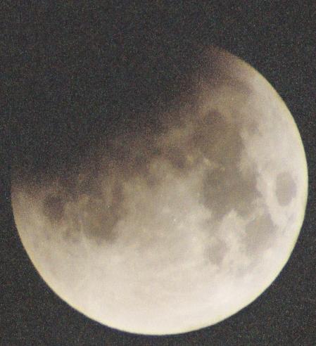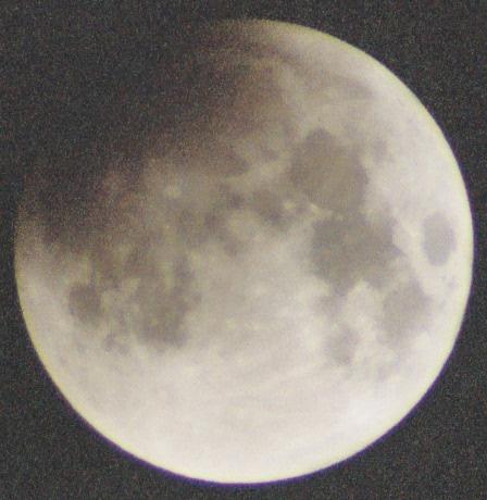 Totale Mondfinsternis - Partielle Phase Aufnahmedaten Zeitpunkt der Aufnahme: 9.11.2003 0.45Uhr MEZ Verwendete Kamera: Canon EOS IX 7 Film: 27DIN APS-Film Als Objektiv wurde ein Tele-Zoomobjektiv mit 300mm Brennweite verwendet, welches mit Hilfe eines Telekonverters 3-fach auf 900mm Brennweite verlängert wurde. Blende: 5,6 Belichtung: 1/350Sekunde