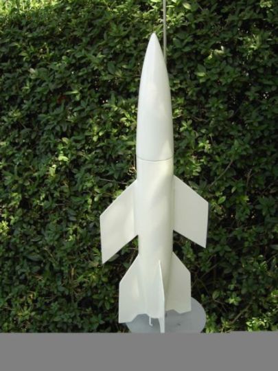 Hallo, habe einen Bausatz der V2 zu der geflügelten Variante A4b umgebaut. Körperrohr und Spitze aus Glasfaser. Flossen aus Plastikmaterial zugeschnitten. Die Lackierung bzw. das Abkleben ist allerdings recht difizil. Es ist immer recht schwierig auf weiß schwarz bzw. graphit drauf zu lakieren ohne dass Farbschleier drunterkriechen. Es fehlen noch die letzten Details