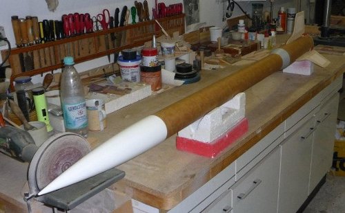 Hallo Rainer Was da drüber kommt, steht noch nicht fest. Den unteren Teil mit den Motorhalter muß ich so wieso bauen. Flossen aus Balsa mit Kieferleisten und Harz, sind gerade in Bau. Alles andere wird auf Kaliber 1,5 angepasst, oder passend gemacht. Viele Grüße von Wolfgang (Beitrag nachträglich am 19., Juli. 2010 von phoenix editiert) |