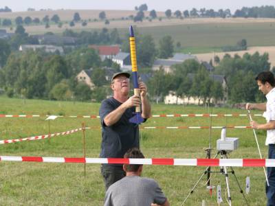 Der Hund fährt wohl voll auf Raketen ab, wie? Ziemlich. Man versteht seinen eigenen Countdown nicht mehr Aber wir haben uns mittlerweile über die Jahre an ihn gewöhnt Nur fürs TV-Team mußten wir ihn mal ein bischen ins Zelt sperren - sonst wäre der Tontechniker irgendwann ausgeflippt... |