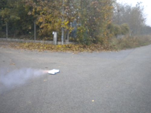 Hier kann man einen Eigenbau starten sehen und danach die tolle Rauchentwicklung.