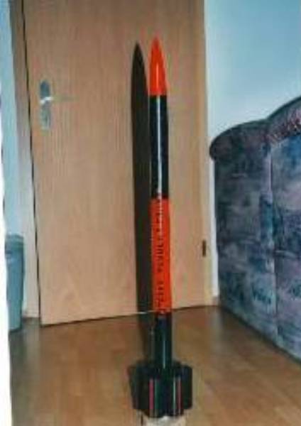 Hallo ich hab mal wieder Zeit gehabt ne Rakete zu bauen, und wollt sie euch mal zeigen. Sie hat keine normalen fin´s, sondern Rohre zum stabilisieren. da ich sowas bei spaceCAD nicht zur Auswahl hab konnte ich sie leider nicht berechnen, und hoffe sie fliegt gut. Ich lasse sie mit einen D7 fliegen, der bei einen Gewicht von 140g mit Treibsatz ne ganz gute höhe bringen müßte. Werde euch dann die bilder vom start zeigen... gruß Andy...